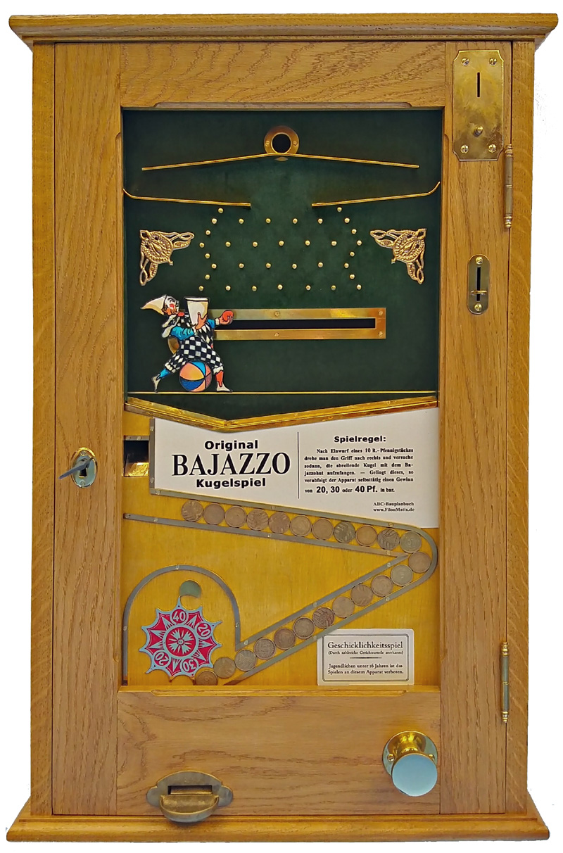 Dieser Spielautomat konnte voll funktionsfähig als Replikat im Jahr 2006 fertiggestellt  werden. Mit der ersten Bauanleitung, dem ABC-Bauplanbuch Bajazzo, zum eigenen historischen Spielautomaten!