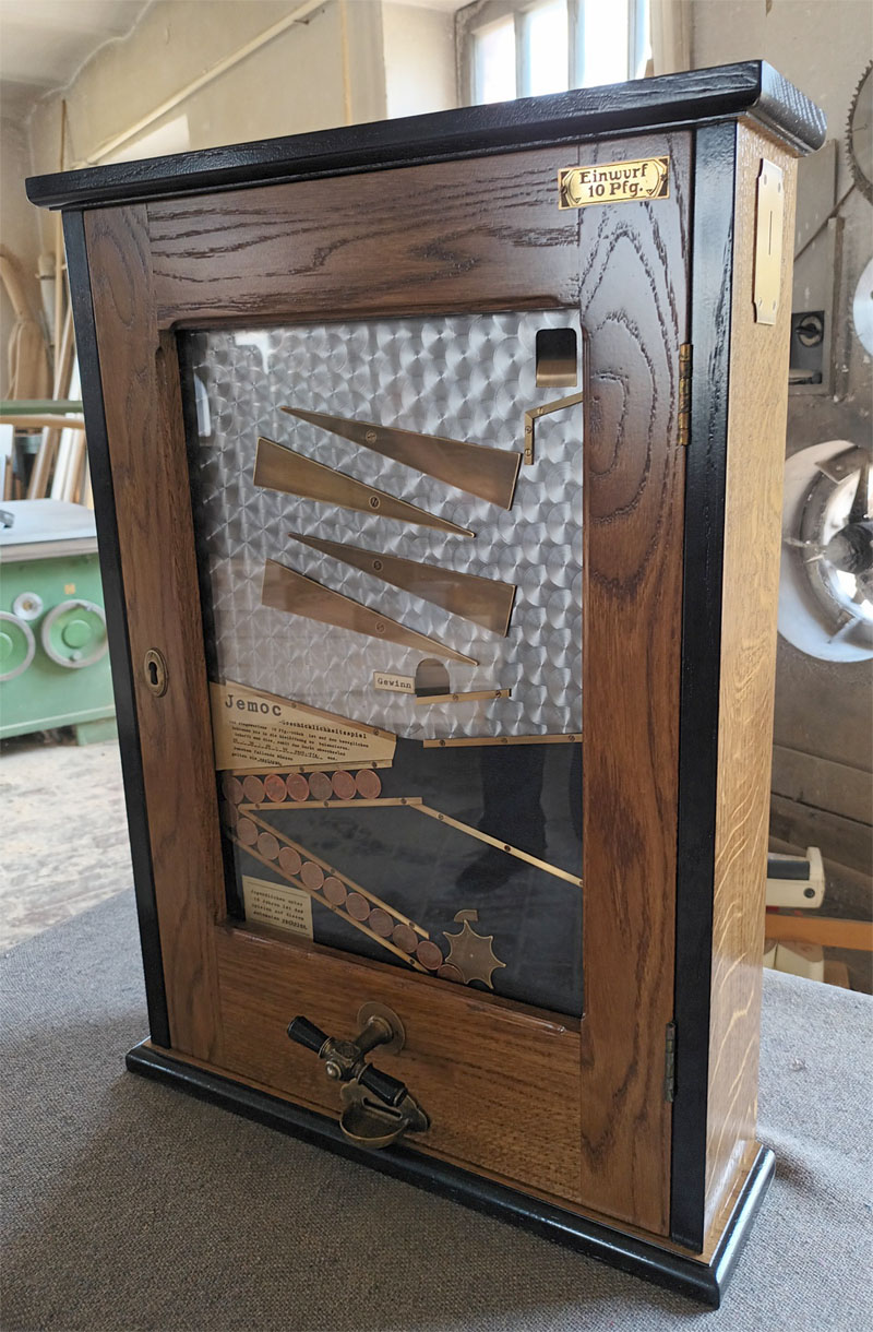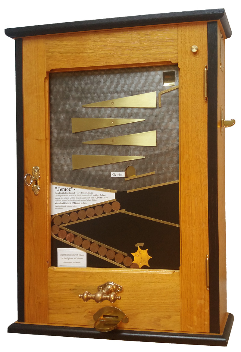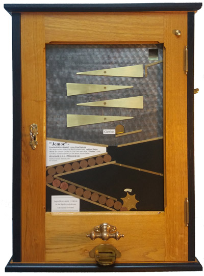 Dieser Spielautomat konnte voll funktionsfähig als Replikat im Jahr 2016 fertiggestellt werden. Mit der zweiten Bauanleitung, dem ABC-Bauplanbuch Jemoc, zum eigenen historischen Spielautomaten!