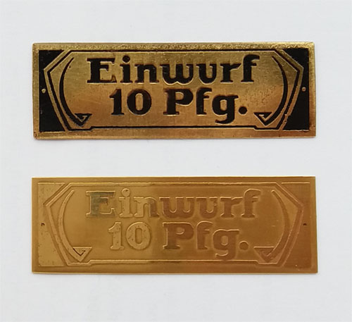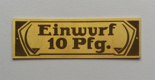 - Messingschild "Einwurf 10 Pfg."
