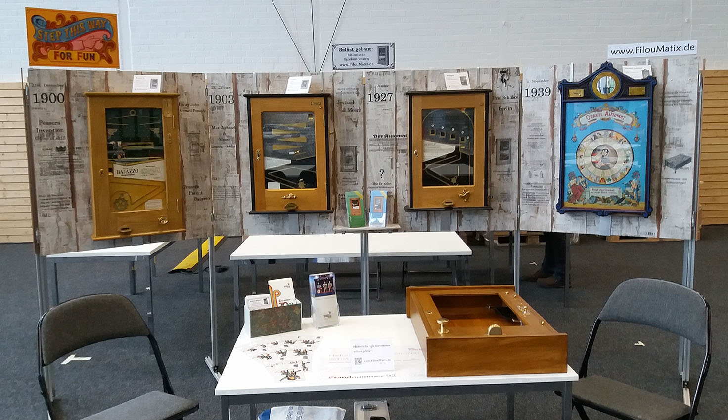 Mobiler Stand zur Präsentation historischer Spielautomaten für Veranstaltungen