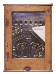 Der Spielautomat >Olympia< stellt eine Variante eines Fingerschlagautomaten dar. Nach Einwurf einer Spielmarke gleitet diese vor den Fingerschlagring zur Schleudervorrichtung unterhalb des Einwurfschlitzes. Wird dieser Ring geschlagen schleudert die Spielmarke in das Spielfeld, wo sie im Gewinnfall in eine der sechs Fangtaschen gelangen sollte, oder im anderem Falle in eine der beiden Register für die Gewinnauszahlung fällt. Trifft sie in eine Fangtasche, gleite die Spielmarke zum Sperrhebel der Auszahlräder und entriegelt diese. Entsprechend der getroffenen Fangtasche werden 2 oder 3 Spielmarken ausgezahlt. Zusätzlich kann je nach Füllstand des Reservefaches der Gewinn auf bis zu zehn Spielmarken steigen, welches beim auslösen des Auszahlrades vom linken Spielfeld anschließend von der gleichen Spielmarke geöffnet wird. Sind alle Register voll und es wird keine Fangtasche getroffen, so fällt die Spielmarke in die Kasse.