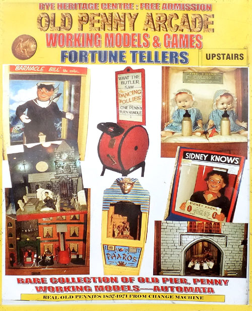 Zufallsfund!    Während einer Schiffsreise im April 2014, machte meine Reisegruppe bei einem Landausflug Zwischenstopp in Rye (England, nahe Dover). Dort besuchte die Reisegruppe auch das Rye Hertitage INFORMATION CENTRE. Völlig unerwartet befand sich dort u.a. eine Sammlung historischer Spielautomaten. Diese konnten mit original "one penny" Geldstücken bespielt werden. Leider konnten nicht alle Spielautomaten ausprobiert werden, da nicht genügend Zeit zur Verfügung stand.  Für ein paar schöne Schnappschüsse hat sie allerdings gereicht.