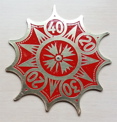 Nachempfundenes Auszahlrad mit dem original Motiv vom Schülke-Bajazzo von 1926  in Ätztechnik hergestellt.