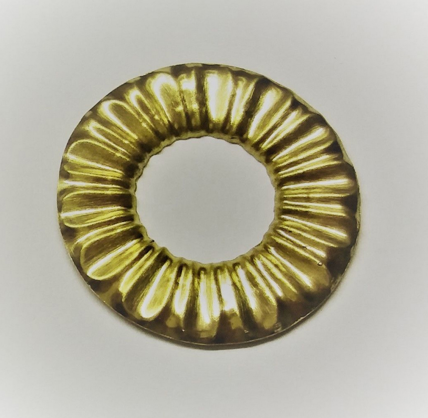 Nachempfundene Zierblende von Kugellöchern. Der Prägestempel wurde handgefertigt. Geeignet für Nachbau und Restauration historischer Kugel - Spielautomaten, Loch ca. 14 mm, außen ca. 31 mm
